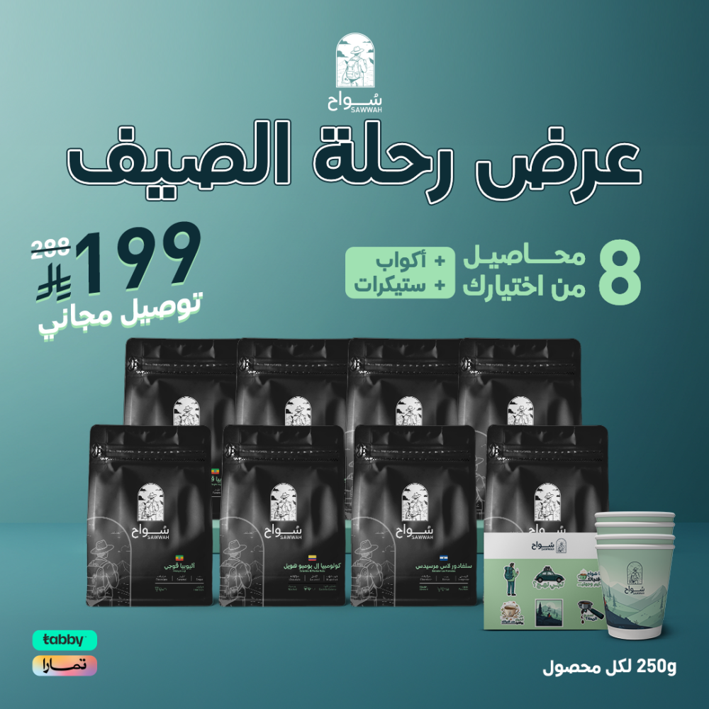 مع عرض قهوة مختصة من متجر سواح نقدم لك فرصة ذهبية لتجربة 8 محاصيل عالمية مختارة بعناية، كل محصول بوزن 250 جرام . اطلب الان من خلالنا .